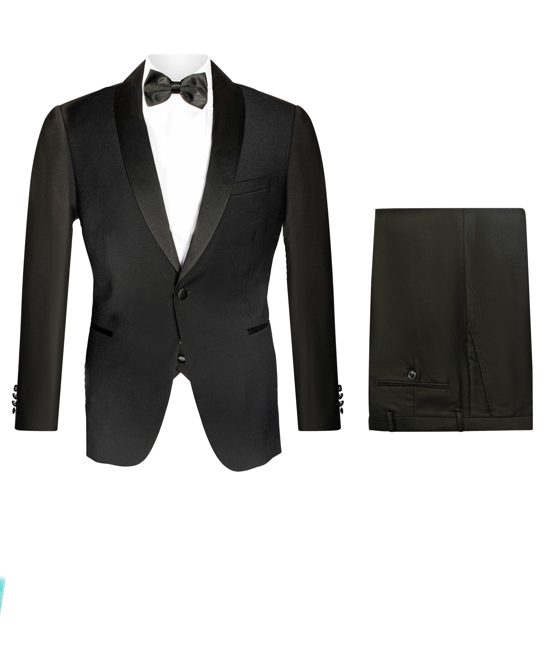 Add a touch of style to your look with this Black shawl label tuxedo suit. It's tailored from blended fabric, has a one-button closure, three pockets in the outer, two inside for your wallet and phone, two vents for lift and movement, and is fully lined. A classic fit keeps the look clean, crisp and classically modern.
